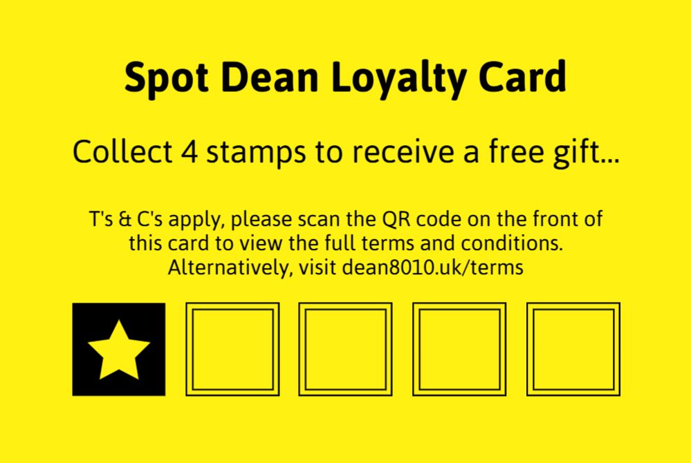 After 24 hours you can present your card for a second stamp, once you have 5 (five) stamps you can claim the free gift.